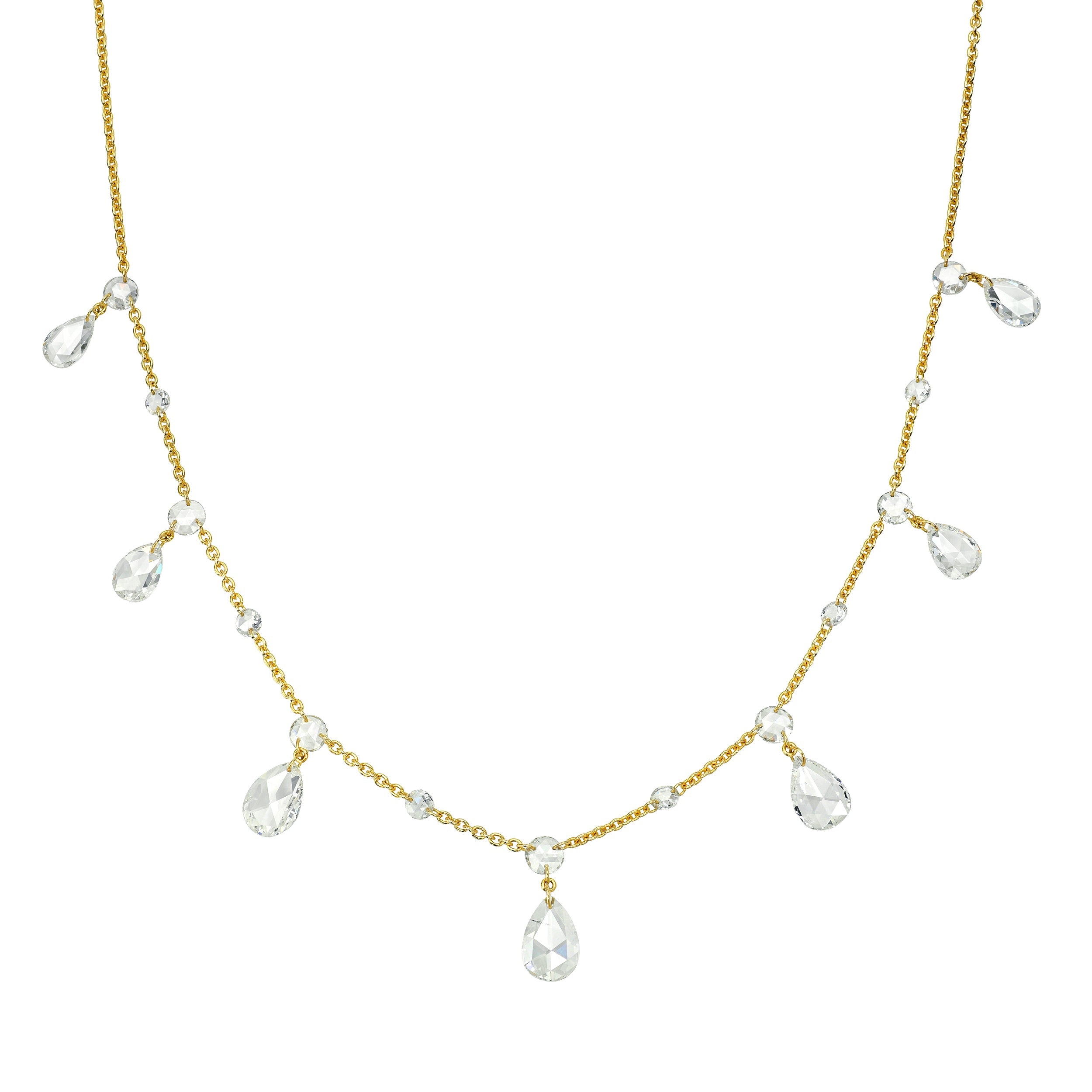 Inspired by Gaia, the goddess of nature and rebirth, this necklace channels the quiet power of feminine energy. Each rose-cut pear diamond on this choker feels like a sacred drop of water—clear, soft, and soul-stirring.