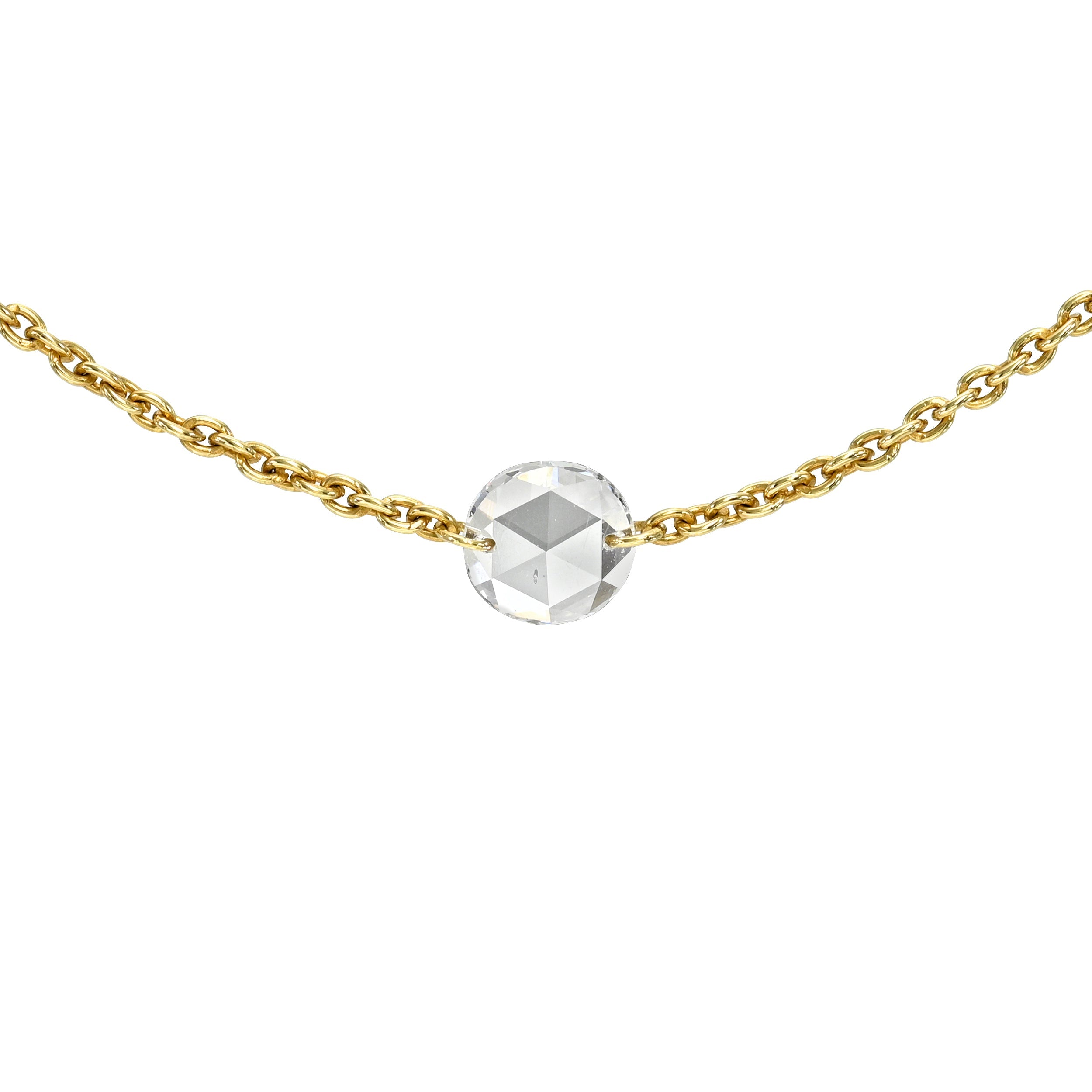 18k gold Eau de Rose Cut Single Diamond Necklace, featuring a 0.10ct, 0.20ct, or 0.60ct single round white rose cut diamond. This necklace is 16" in length.
