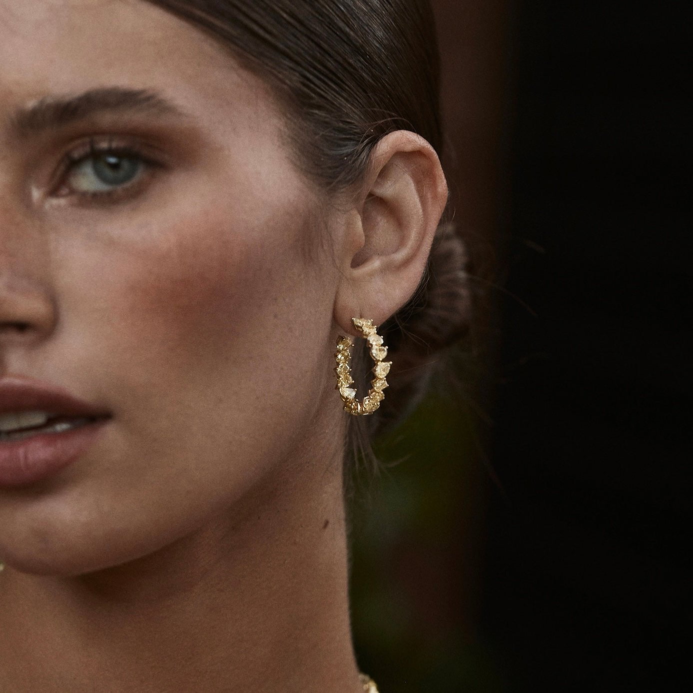 18k yellow gold Fortuna Fancy Yellow Diamond Hoops, featuring 9.60ctw fancy yellow diamonds. Sold as a pair.