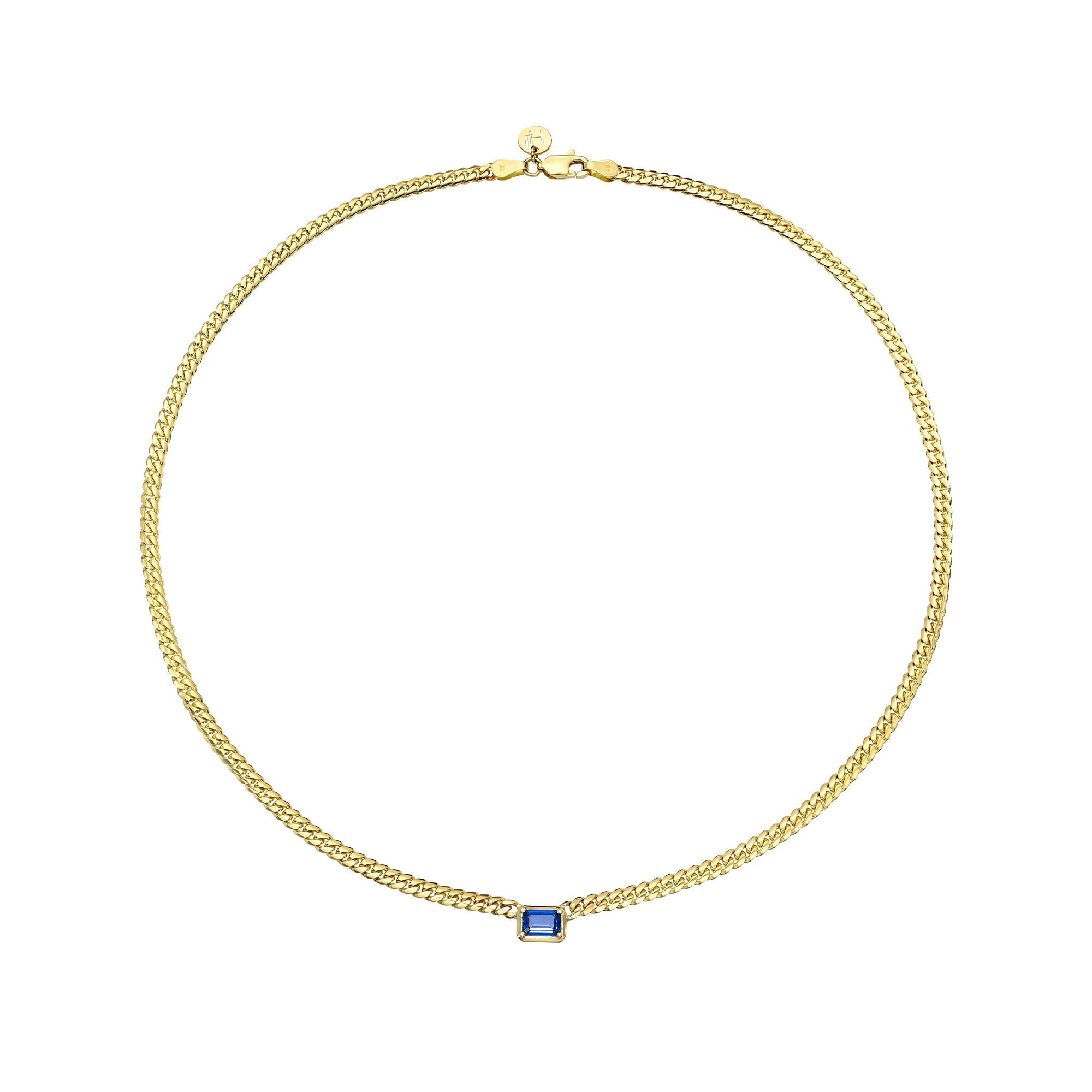 Crafted in solid 14k gold, the Emerald Cut Blue Sapphire Cuban Choker pairs a classic Cuban chain with a vibrant 0.56ct blue sapphire center stone. Blue sapphire is known for sharpening intuition, enhancing mental clarity, and strengthening trust in your inner voice. A signature piece designed to elevate your layers and stand beautifully on its own.