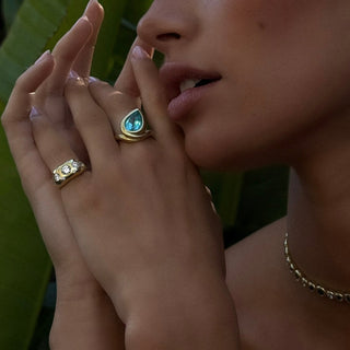 Enigma Water Drop Diamond Satin Ring Yellow Gold by Logan Hollowell Jewelry