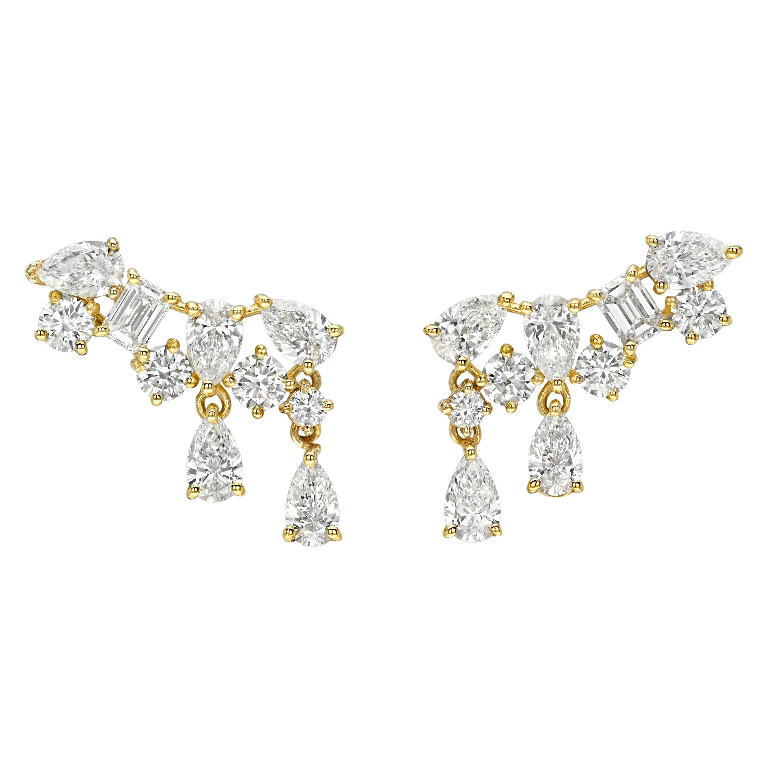 These ear climbers are anything but subtle. Featuring 3.16 carats of brilliant white diamonds in a medley of cuts, from pear to emerald to round, these earrings are designed to catch the light from every angle.