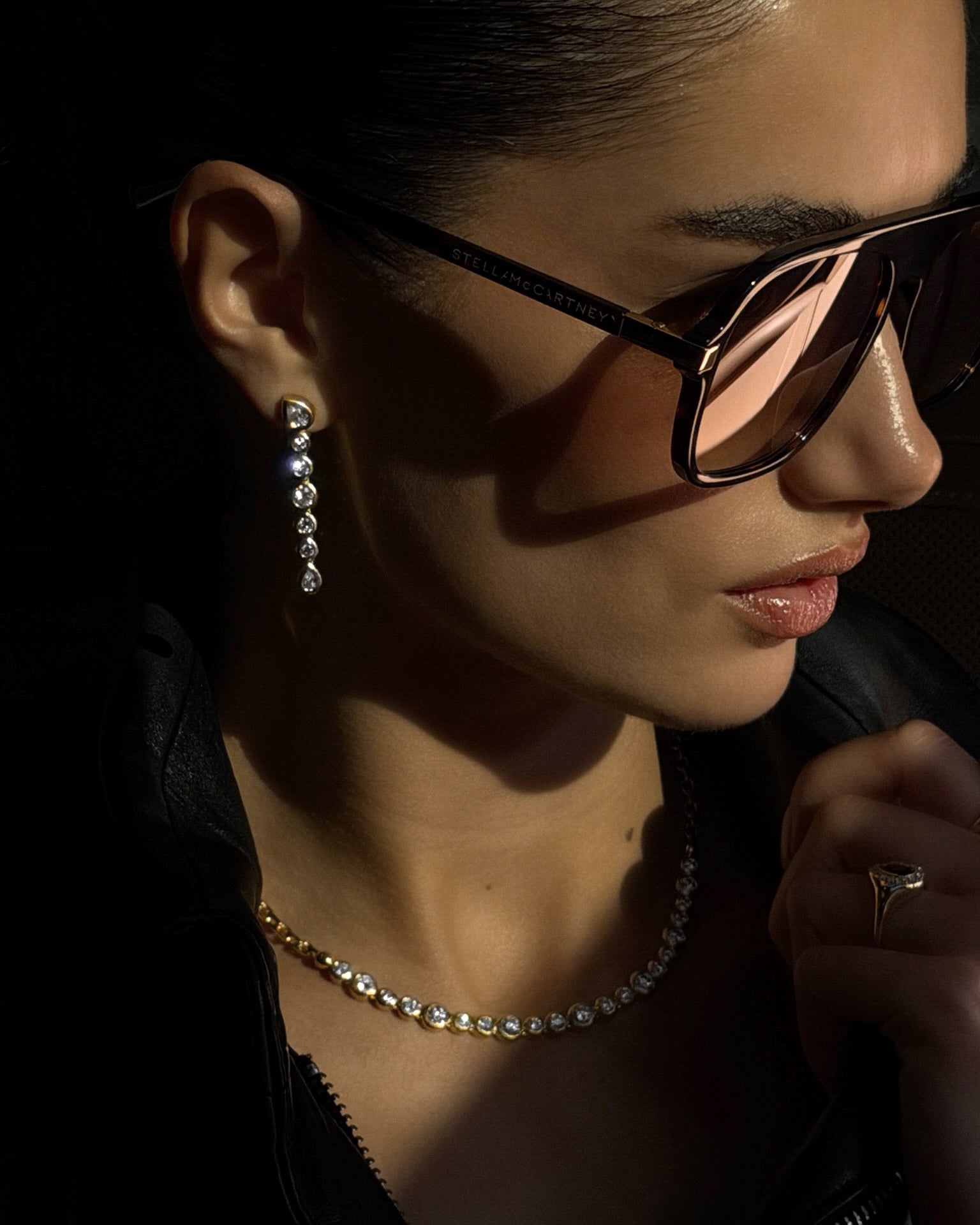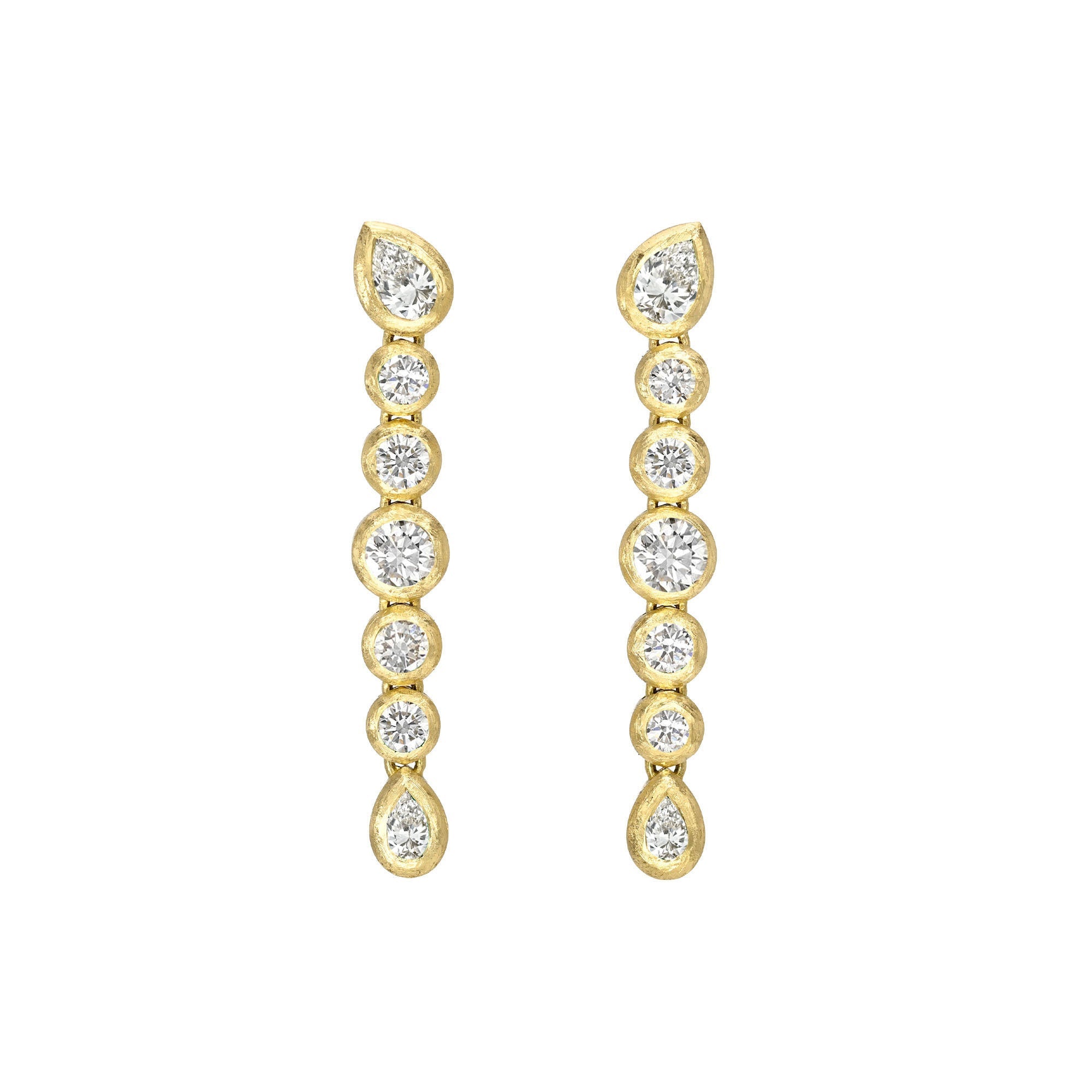 With 2.88ctw of white diamonds set in 18k gold, these Bubble Drop Earrings cascade in a graceful line from round to pear shapes. Symbolic and sculptural, they’re a fresh emerald-forward take on the Bubble collection.
