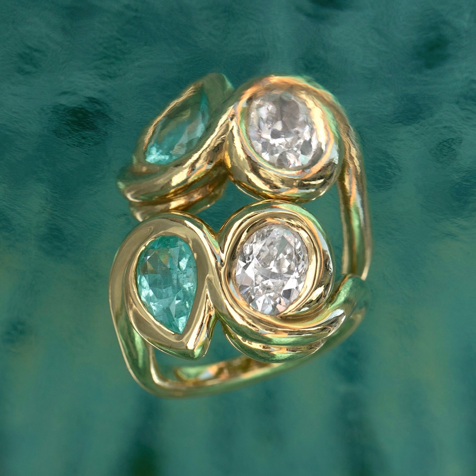 Enigma Paraiba and Diamond Toi et Moi Ring