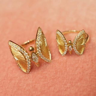 The ring features a delicately sculpted baby lioness, her form a tribute to the regal majesty she will grow into. A few carefully placed diamonds sparkle across her figure, representing both the light she carries within and the wisdom that comes with time. These diamonds, understated yet luminous, add a touch of brilliance to the lioness, reflecting her strength and resilience.