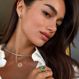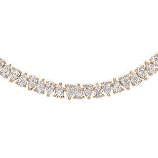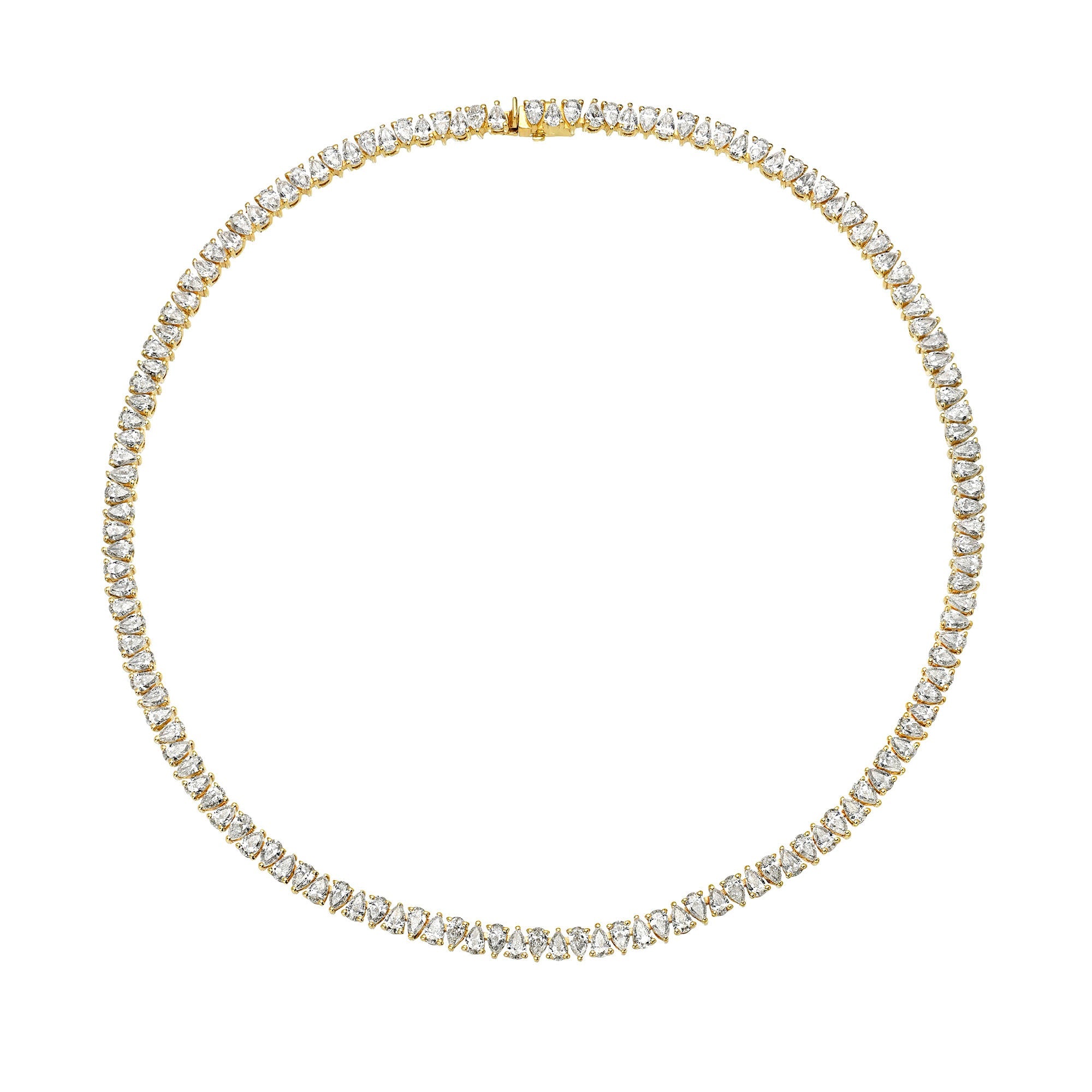 Our new reverse tennis style offers an infinite halo of diamonds—more sparkle and reimagined without the wheat chain. This piece is part of the Reverse Water Drop Collection, inspired by the quiet power and feminine energy of water. Soft yet strong, fluid yet grounding—like water, this necklace flows with grace and strength. The continuous string of diamonds creates a silhouette that reflects vitality, connection, and inner clarity.