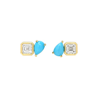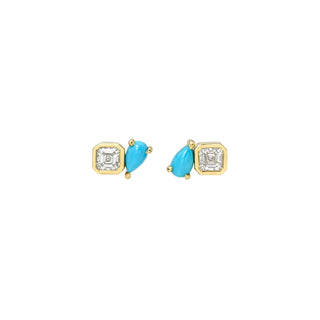 18k gold stud earrings featuring marquise and round diamonds with a total carat weight of 1.15ctw, per pair. Sold as pair or single earring.