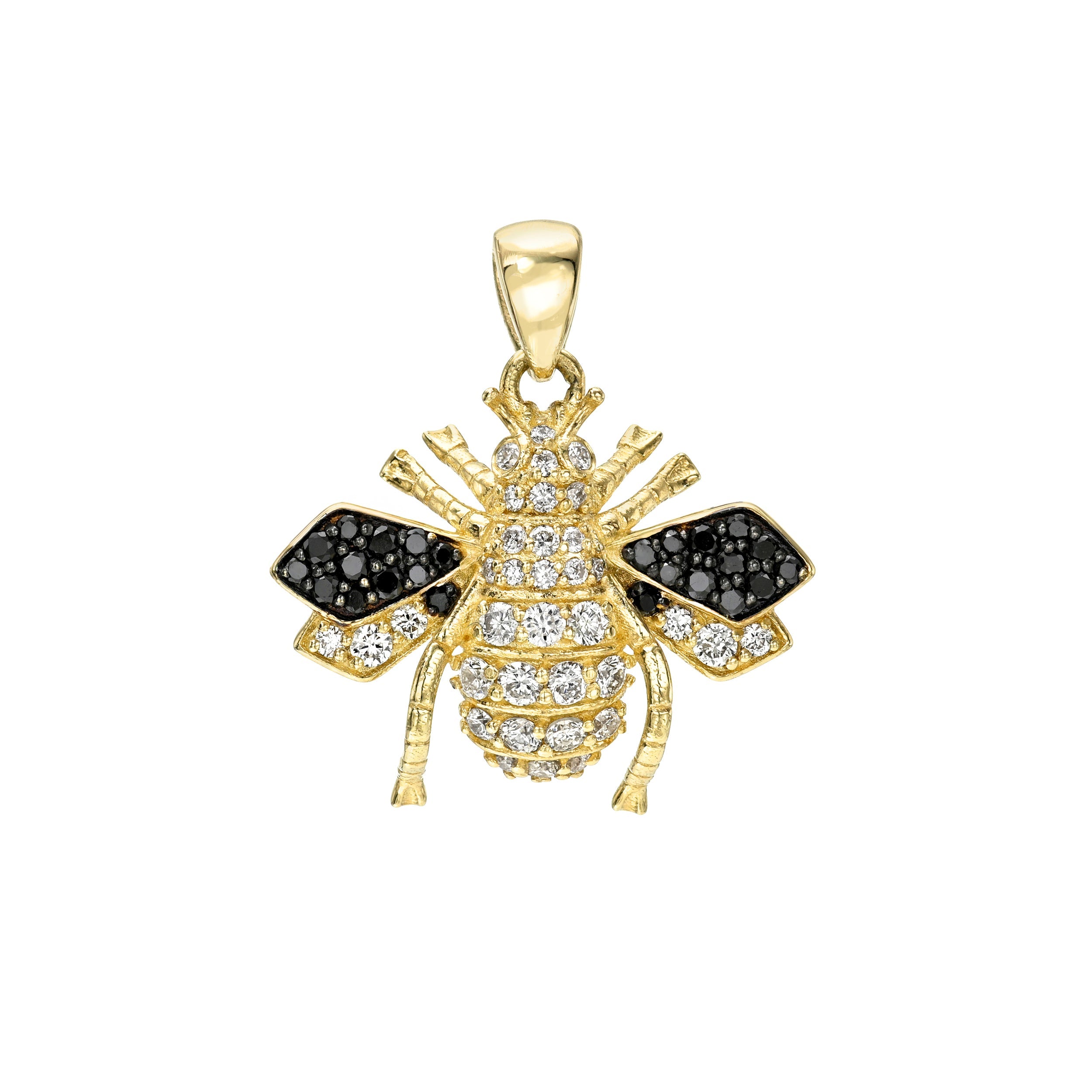 18k gold Diamond Arista Bee Pendant, featuring 0.20ctw white diamonds and 0.10ctw black diamonds.