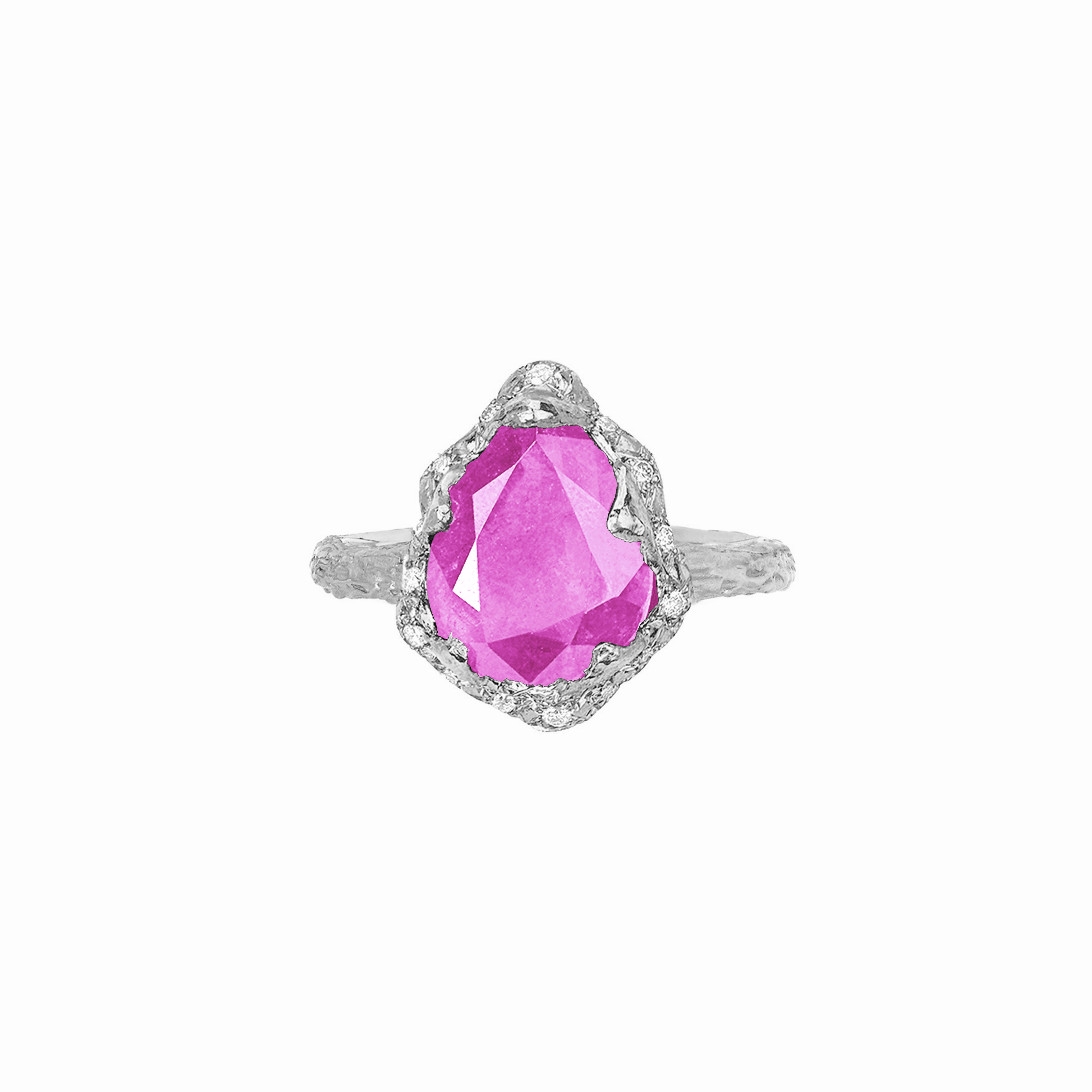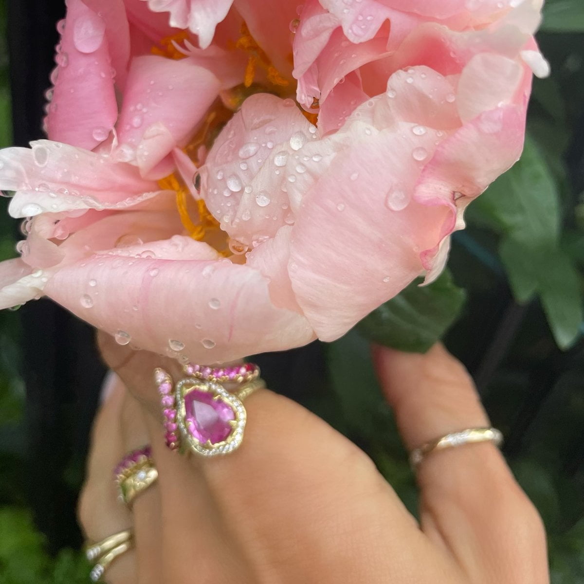 Baby Queen Water Drop Pink Sapphire Ring with Sprinkled Diamonds