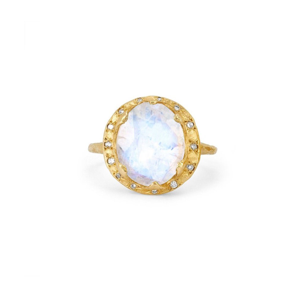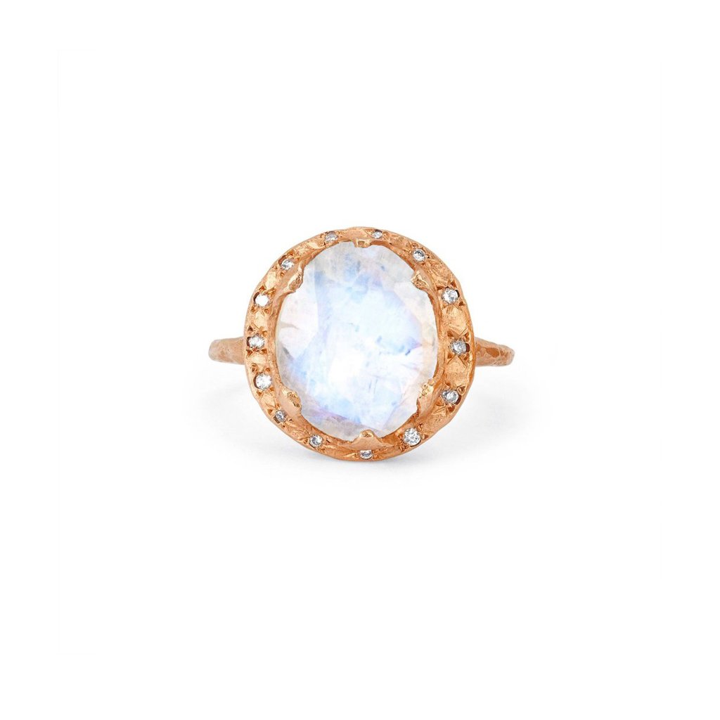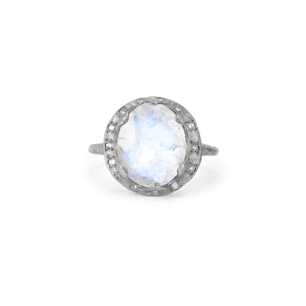 Baby Queen Oval Moonstone Ring with Sprinkled Diamonds